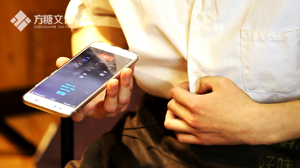 饭后,导演摄像便和侯氏的负责人商谈起拍摄事宜,主要是拍摄地点的选取、受访员工的筛选和采访顺序的安排。因为需要录制同期声,所以地点的选取就显得尤为重要了。在一番权衡后,我们把拍摄地点选在了一个很靠里的小包厢,空间虽然不大,但胜在足够安静。商榷好拍摄事宜后,小编便和摄影师一起摆放灯具、背景布和拍摄用到的道具,顺便配合摄影师试镜调整机位;与此同时,店里的员工也开始陆续上班,准备晨会。9点20分,前期准备工作完成,拍摄正式开始。