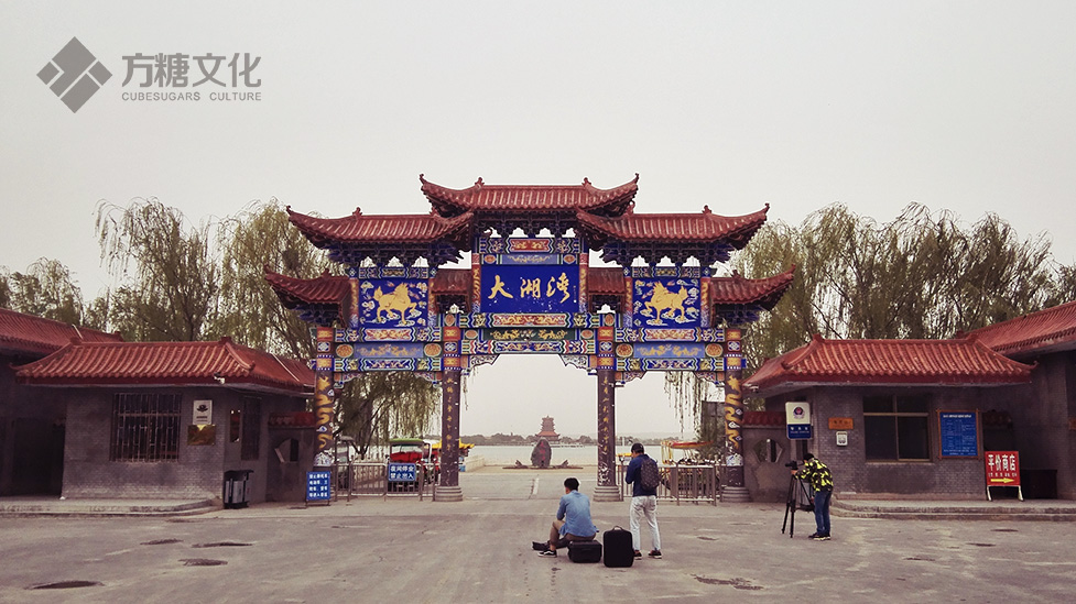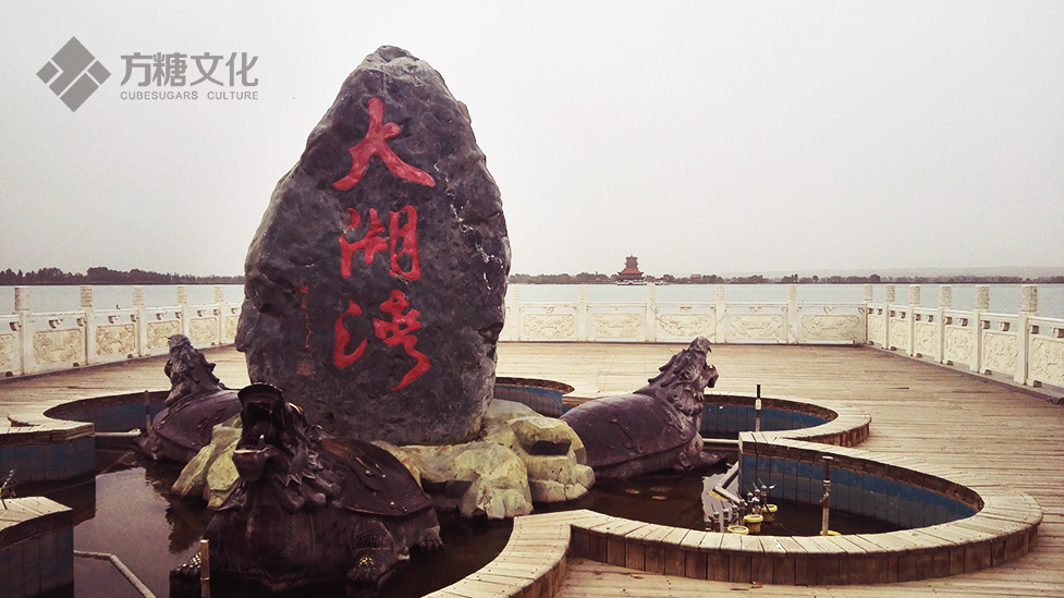 [大湖湾的石刻,及远处的崇文楼。]